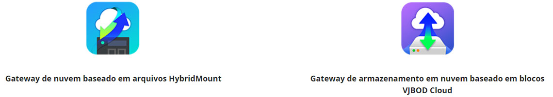 VJBOD Cloud: Suporte à montagem de armazenamento na nuvem como um volume baseado em bloco ou LUN em um NAS Qnap. A transmissão baseada em bloco carrega dados aleatórios para a nuvem em blocos, e somente as alterações de volume ou LUN, como adição, modificação ou exclusão, serão transmitidos. Indicado para aplicativos de nível corporativo com grandes requisitos de transferência, como banco de dados, volumes de VM e vídeos.