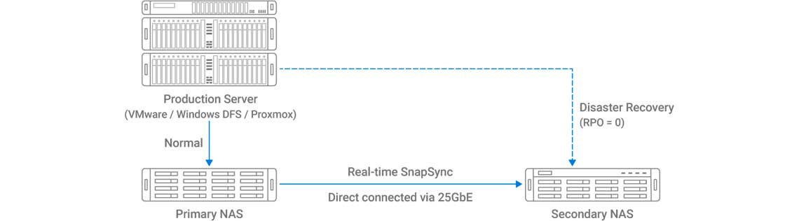 O SnapSync garante que tanto o NAS primário como o NAS secundário mantenham dados idênticos. Quando os dados são gravados na origem, eles também são imediatamente gravados no destino.