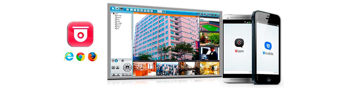 A aplicação Vmobile disponível para dispositivos iOS ou Android possibilita monitorar câmeras a qualquer momento ou lugar, disponibilizando imagens do ambiente de trabalho em tempo real pelo smartphone.