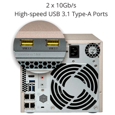 Através da nova conexão USB3.1, o TVS-473 proporciona velocidades máximas até 10Gb/s em modo de acesso direto, aumentando significativamente o desempenho na transferência de dados entre dispositivos.