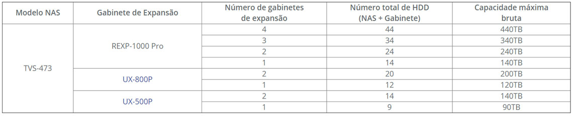 O TVS-473 Qnap é uma solução de armazenamento que suporta expansão via módulos adicionais JBOD Qnap, expandindo a capacidade on-demand.