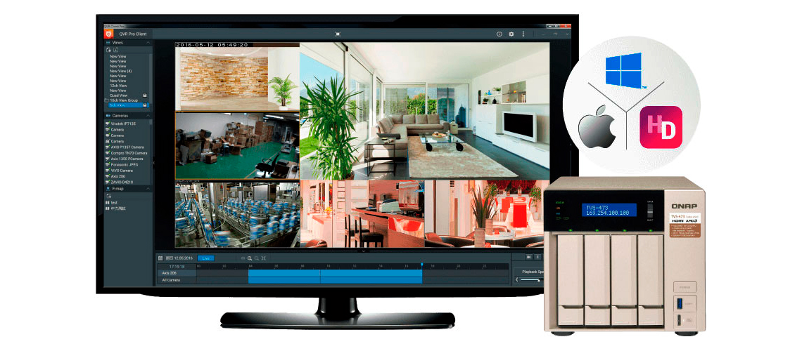 O TVS-473 é um sistema para gerenciamento de vigilância CFTV em rede profissional (VMS), que suporta mais 3.000 modelos de câmeras IP e permite licenças adicionais por canal adquiridas on-demand.