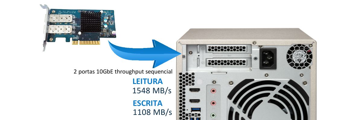 O NAS Server 4 baias também oferece dois slots de expansão PCIe Gen3 para aumentar o potencial do desempenho de rede de 10 GbE.