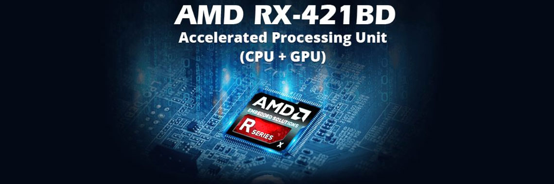 O SoC AMD Embedded R-Series usa núcleos de CPU x86 "Excavator" e suporta o GCN e DDR4 de 3ª geração AMD Radeon.