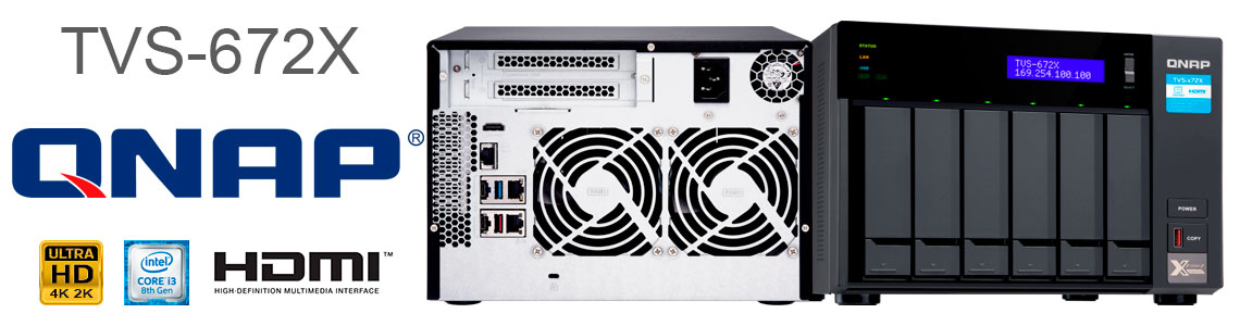 O NAS TVS-672X possui suporte para placa Intel UHD Graphics 630 que suporta decodificação de hardware e transcodificação em tempo real. A saída HDMI 2.0 suporta até 4K (3840 x 2160p) a 60 Hz, proporcionando benefícios ideais para aplicações como produção e edição de vídeo ou design industrial que exige alta resolução e realismo de cores. Também suporta armazenamento intensivo de mídia, transferência e exibição. Ao conectar o TVS-672X a um monitor HDMI, o usuário pode operar máquinas virtuais a partir de Virtualization Station ou Ubuntu Linux Station, ou assistir diretamente a conteúdo multimídia salvo no NAS. O HD Station da Qnap também permite que os usuários usem o HD Player ou players de terceiros, como o Plex Home Theater.