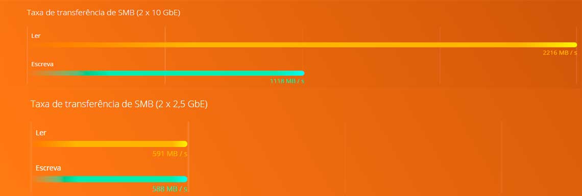 As portas duplas também oferecem Port Trunking para velocidades de transmissão de até 5Gbps, melhorando o desempenho comercial de aplicativos que consomem muita largura de banda, como transferências de arquivos grandes, backup / restauração rápida e transferência e edição de multimídia.