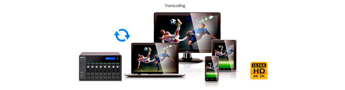 Ele permite ainda que vários dispositivos exibam simultaneamente diferentes vídeos armazenados no TVS-871 através do recurso de transcodificação acelerada por hardware.