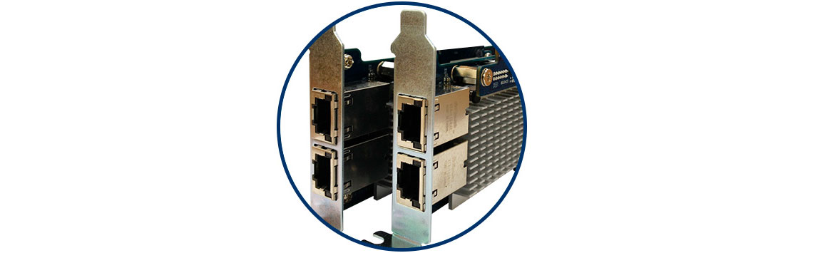 O TVS-871U-RP é equipado com quatro portas Gigabit Ethernet e tem opção de instalação de placa LAN para suportar rede 10GbE de alta velocidade.