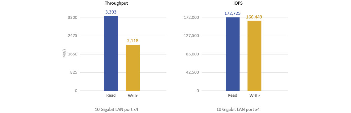 Com suporte para discos Sata 6Gps o TVS-871U-RP alcança mais de 3.300MB/s em rendimento e 172.00 IOPS, melhorando eficientemente as tarefas com alto consumo de CPU.