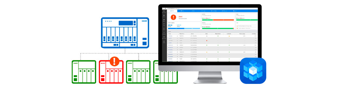 Depois de instalar o Q'center no QTS App Center, o usuário pode usar o server para gerenciar centralmente instalações multi-site de Qnap NAS para monitorar registros do sistema e gerenciar atualizações e manutenção de firmware.