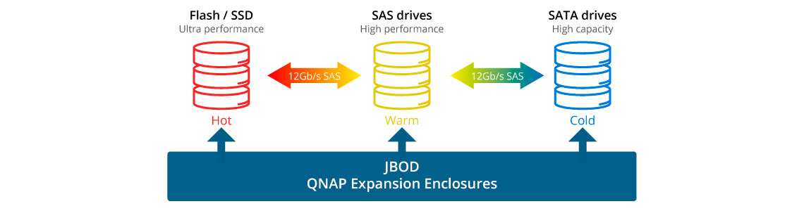 Através da solução de aumento da Qnap, a capacidade de armazenamento total pode ser expandida gradualmente sob demanda.