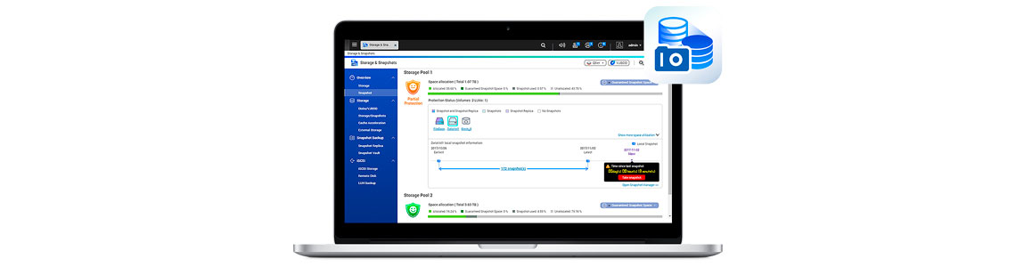 O Storage Manager é uma ferramenta simples de ser utilizada para gerenciar os snapshots baseado em web realizando facilmente backup e restauração dados no Qnap TVS-EC1680U-SAS-RP para evitar a perda de dados importantes.