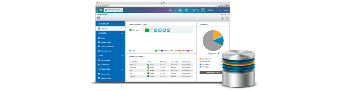 O Storage Manager QTS fornece as ferramentas e opções ideais para o gerenciamento de armazenamento do sistema para simplificar o processo de expansão de capacidade NAS Qnap e gerenciar os gabinete de expansão RAID.