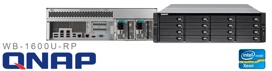 O storage Qnap WB-1600U-RP apresenta em sua composição 16 baias hot-swappable, fonte de alimentação redundante, processador Intel Xeon E3-1225 v2 Quad Core de 3,2GHz, 8GB de memória DDR3, duas portas eSATA, quatro portas LAN Gigabit e um slot para instalação de placa de expansão de armazenamento SAS ou placa de expansão de rede de 1GbE e 10GbE.